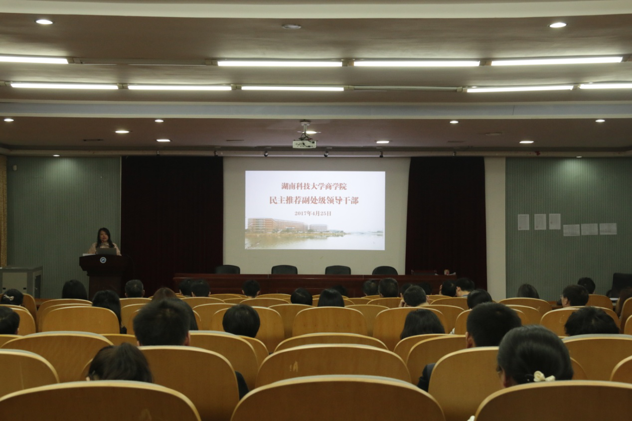 2017年4月25日,bevictor伟德官网在三教楼101会议室召开综合性管理岗位副处级领导干部民主推荐会。会议由院党委书记仇怡主持,学校组织部向大顺副部长、bevictor伟德官网全体教职工参加了此次会议。