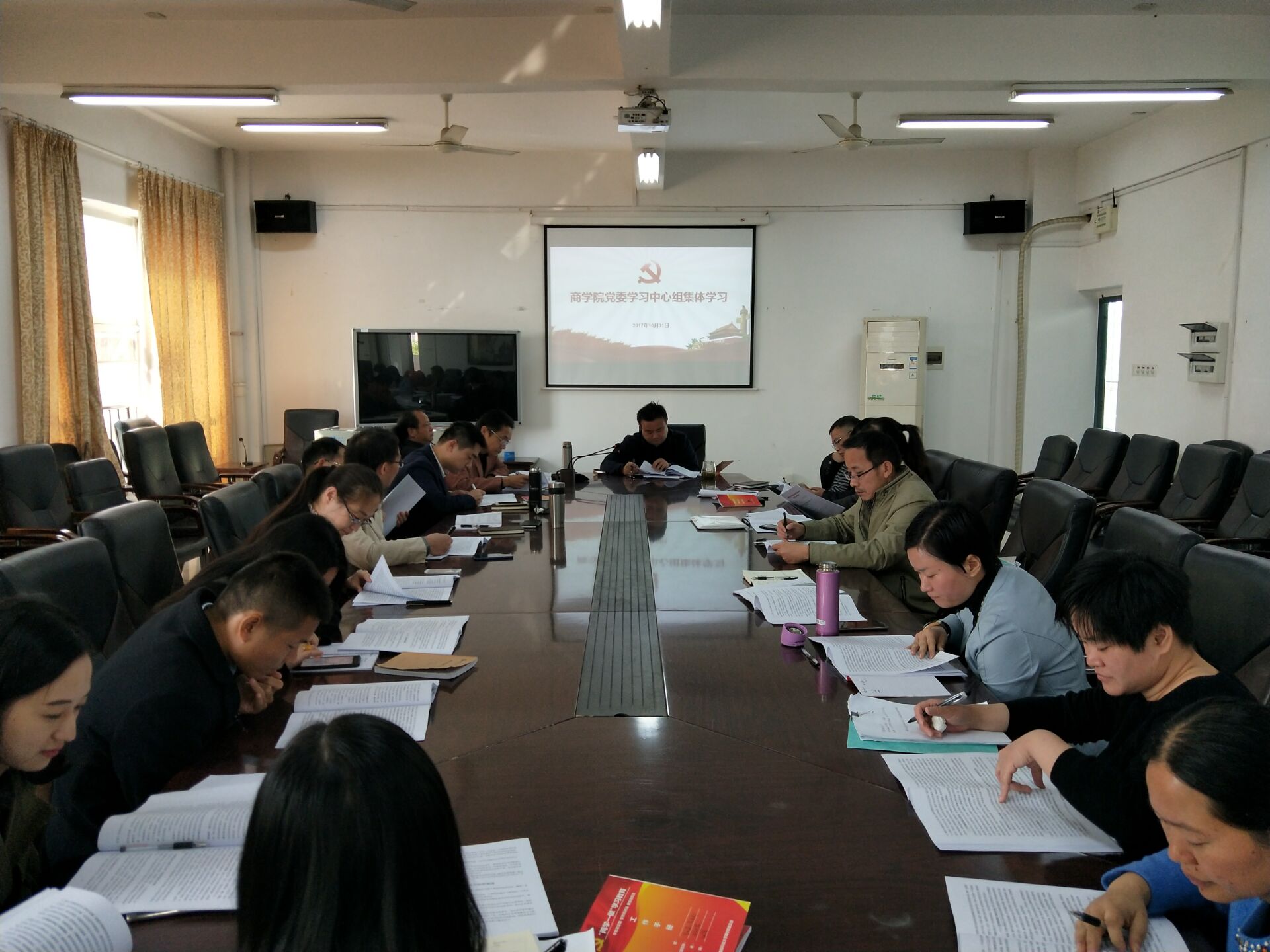2017年10月31日上午,bevictor伟德官网党委学习中心组全体成员在三教411会议室集体学习十九大精神,本次学习由党委书记潘爱民同志主持。