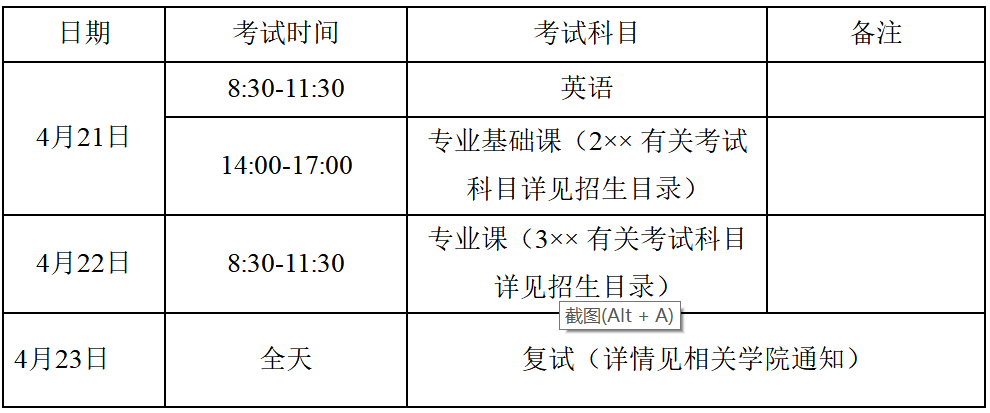 三、考试日程安排