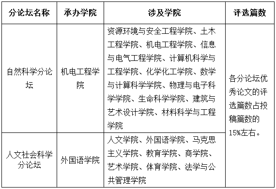 二、分论坛名称、承办学院与优秀论文评选篇数: