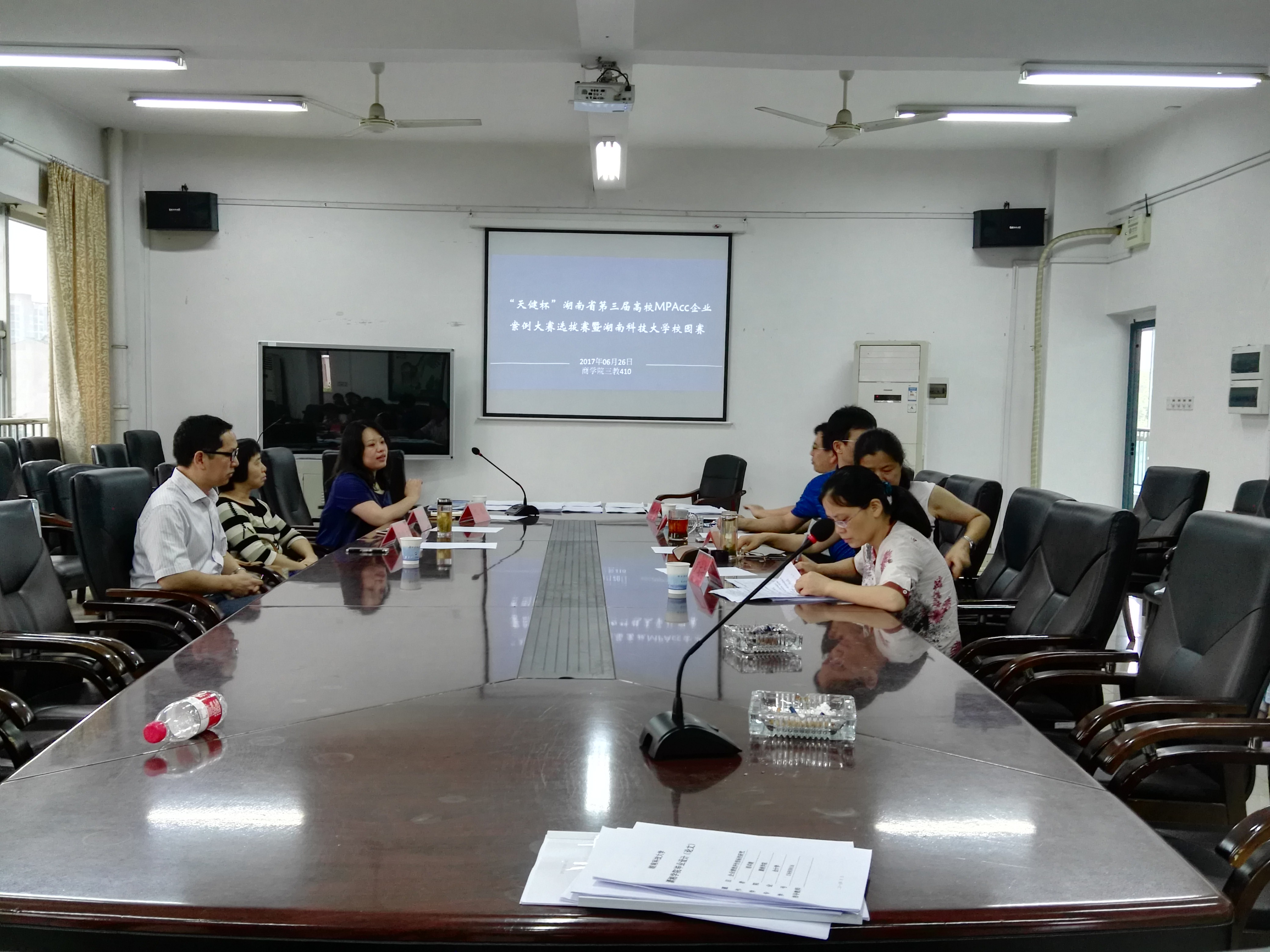 2017年6月26日下午,由研究生院和教务处共同主办,bevictor伟德官网承办的“天健杯”湖南省第三届高校MPAcc案例大赛选拔赛暨bevictor伟德官网校园赛研讨会在三教410会议室举行。bevictor伟德官网党委书记仇怡教授、bevictor伟德官网副院长颜剩勇教授、财务处黄玲娟老师、以及童杰成、杨继平、刘谷金、罗文兵等诸位老师出席大赛并担任评委,学校有关老师、研究生代表观看了此次比赛。大赛开幕式由bevictor伟德官网党委书记仇怡教授主持。
