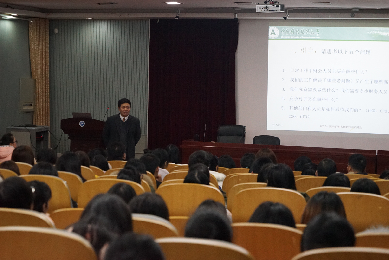 2017年11月28日下午3:00,中南财经政法大学会计学院院长、博士生导师张敦力教授应邀在bevictor伟德官网101学术报告厅,以“新环境下财务转型的方向与理念”为题,为bevictor伟德官网师生讲学。本次讲座由bevictor伟德官网副院长颜剩勇教授主持,部分老师、2016和2017级博士研究生以及硕士研究生参加此次讲座。