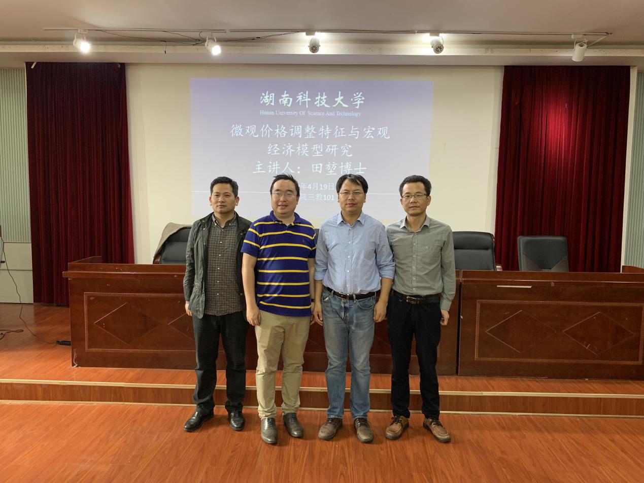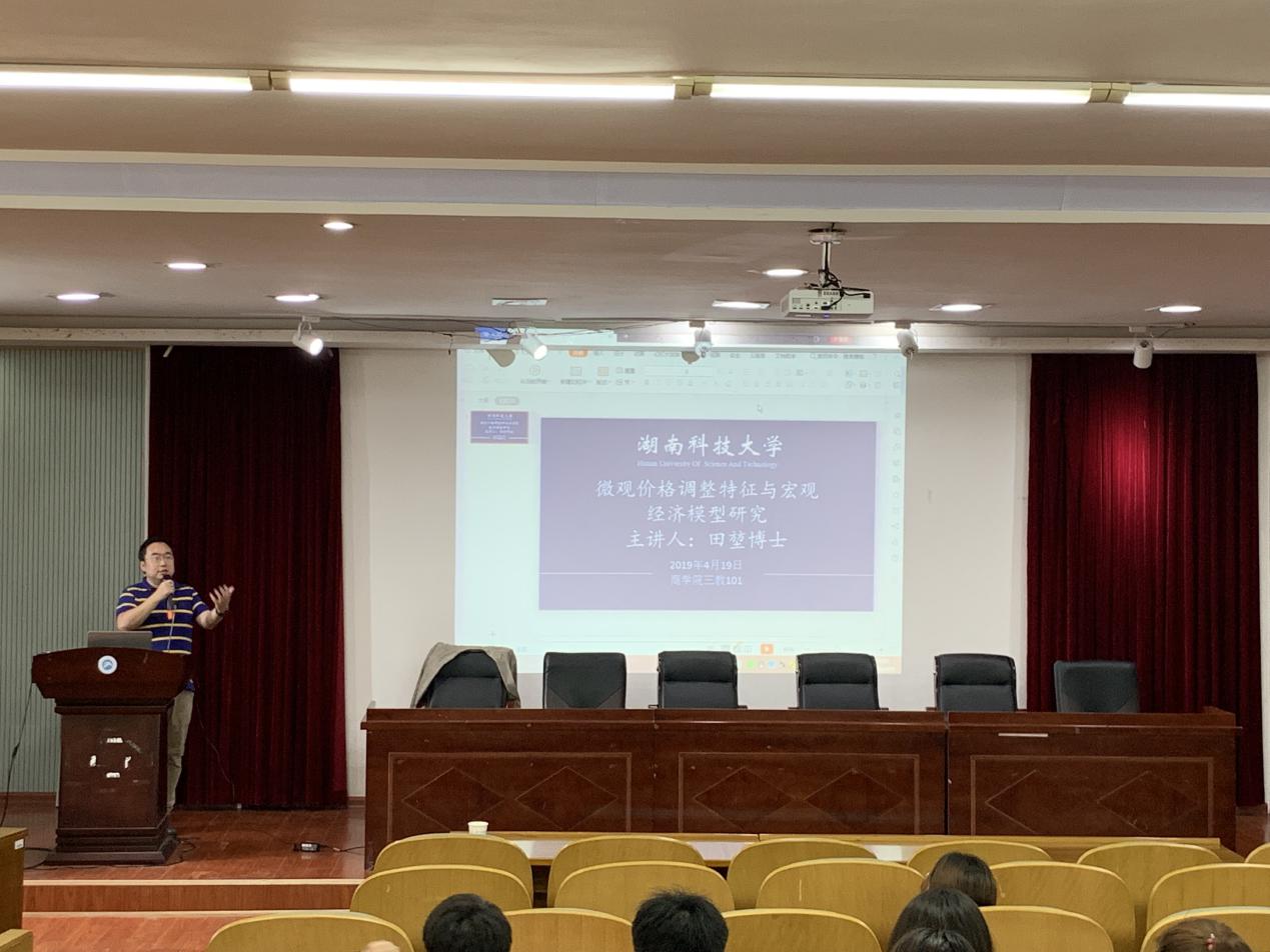 2019年4月19 日(星期五)下午14:30,由bevictor伟德官网举办的主题为“微观价格调整特征与宏观经济模型研究”的学术报告在三教101学术报告厅举行,主讲嘉宾为英国安格利亚大学田堃博士。本次讲座由贺胜兵副院长主持,bevictor伟德官网部分老师和在读博士、硕士研究生参加了讲座。