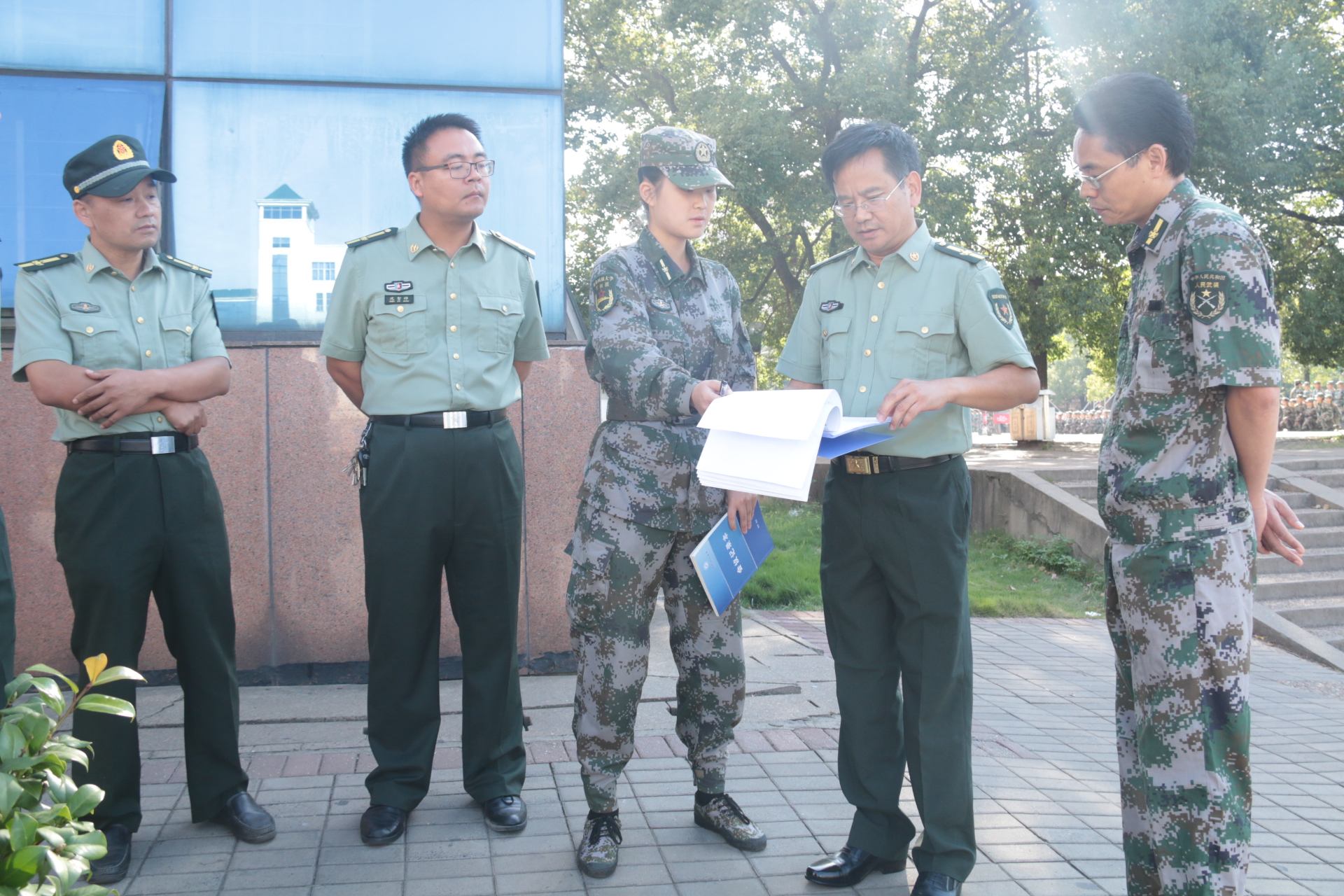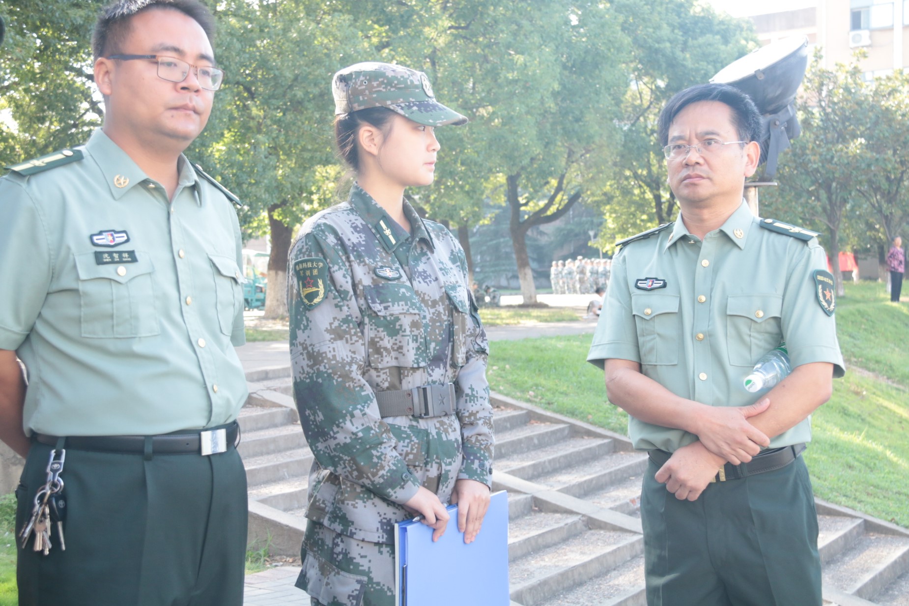 10月3日上午9点,bevictor伟德官网保卫处处长朱理哲、副处长沈智祥等人莅临bevictor伟德官网视察军训情况,bevictor伟德官网党委副书记傅早霞、学工办主任陈攀以及军训团主要负责人到场汇报工作。