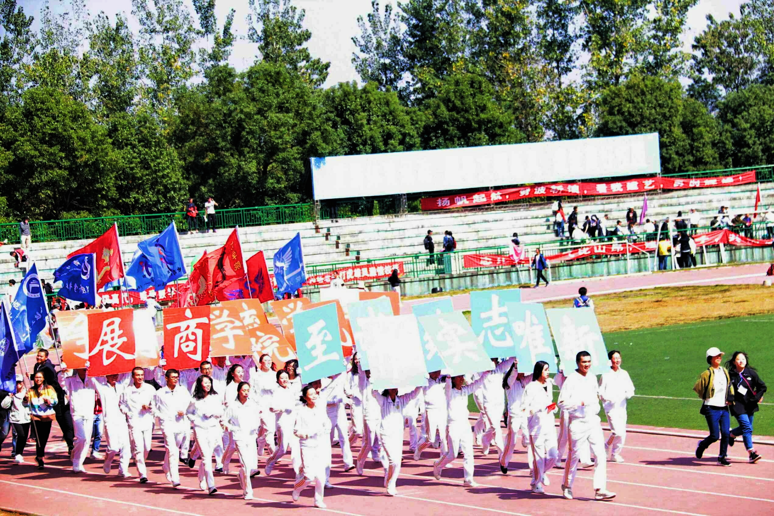 值得一提的是,闭幕式结束之后,bevictor伟德官网方阵队以及院旗班旗举旗手列队喊着“科大最强bevictor伟德官网,有谁不服明年见”的口号绕田径场一圈,借本次校运会之东风,展现了商院的独特风采。
