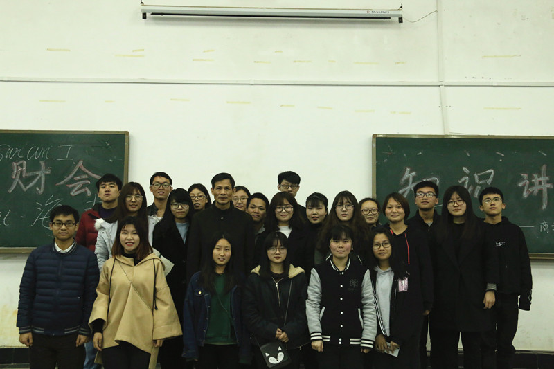 讲座开始后,李教授就考研、考证、就业三个方面简要讲述了会计与财务管理专业的现状。他结合生活,通过列举与我们息息相关的事例,进一步启发大家深入体会财会知识。李老师渊博的专业知识令在场同学啧啧赞叹。在答疑环节,同学们积极地举手,抛出一个又一个问题,李启平教授走下讲台,站在同学中间,绘声绘色地回答着,言简意赅,剖析深刻。尤其是在谈及实习问题时,他直指问题中心,言辞犀利,引人深思:“在进入社会之后,你将面对的是利益竞争,你必须去争取,但是好高骛远又没有能力,你凭什么去争?”。在问答环节中,李教授给予的许多指导性意见让同学们对专业有了更深的理解,减少了对未来的迷茫。