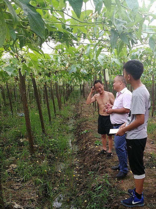 清晨刚下过雨,科研小组便踏着刚从云层里探出的阳光,前往乌石镇天龙村,走访雇农、养殖户以及农业基地负责人,对该地的农业发展模式进行进一步了解。吸取了前两天实践调查的经验,科研小组的走访过程顺利了很多,对问题的把控也更加游刃有余。