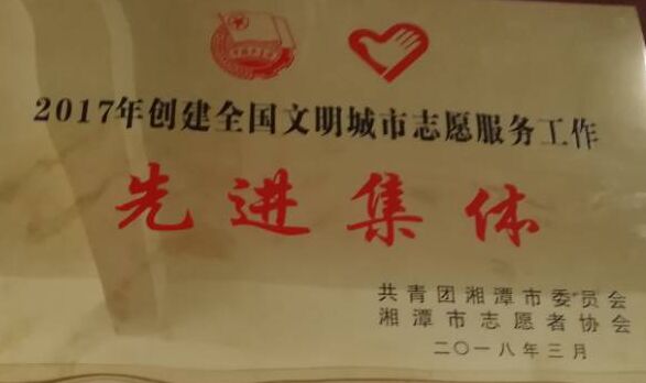 bevictor伟德官网荣获湘潭市创文志愿服务工作“先进集体”荣誉称号