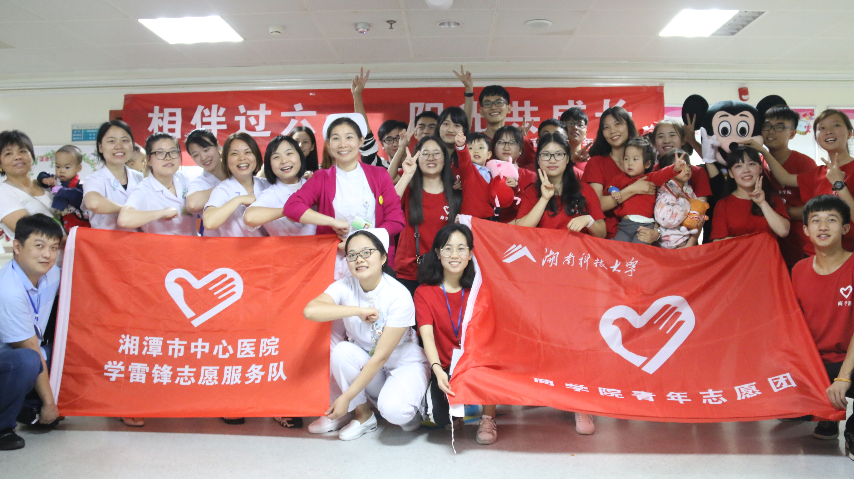 下午,志愿者们早早来到湘潭市中心医院布置场地,挂横幅、挂彩带、吹气球、连接音箱等,精心的布置让整个医院充满了节日的氛围。